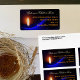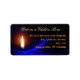 Christmas return address labels. Wide size with scripture along the top, "Unto us a Child is Born", in script. Name and address is printed in orange over a dark blue-black background with a burning candle on the left side. Text aligns to the right with space for up to four lines.