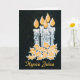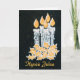 A chic Christmas Card with the greeting in Finnish and five candles with holly, hand-painted in gold and silver paint on a starry black background.