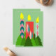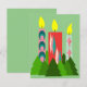 This flat, blank notecard has a Christmas design of candles made of rectangles decorated with stars, ovals, or diamonds with trees grouped around the bottom. Add your own personal message on the back.