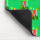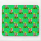 This mouse pad has a Christmas design of candles made of rectangles decorated with stars, ovals, or diamonds with trees grouped around the bottom.