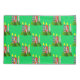 This pillowcase has a Christmas design of candles made of rectangles decorated with stars, ovals, or diamonds with trees grouped around the bottom.