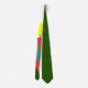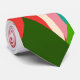 This necktie has a Christmas design of candles made of rectangles decorated with stars, ovals, or diamonds with trees grouped around the bottom.