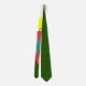 This necktie has a Christmas design of candles made of rectangles decorated with stars, ovals, or diamonds with trees grouped around the bottom.