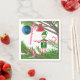 Holiday napkins with my 3d artwork of a cute elf hanging candy canes on a decorated Christmas tree.