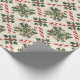 Christmas Candy Cane Pattern With Holly Berries Wrapping Paper