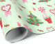 This cute wrapping paper is versatile and can be used for giving gifts or art and craft projects. The design features Christmas trees, candy canes, sweets and cakes on a green background.
