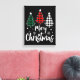 This stretched canvas wall art is shown with a festive Christmas holiday trees art print.
