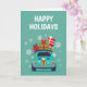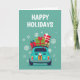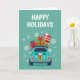 Send festive cheer with this charming Christmas card featuring a car driving off with a stack of colourful presents tied to the roof. The playful design captures the joy and excitement of the holiday season, making it perfect for spreading warm wishes to friends and family. A delightful choice for anyone who loves whimsical, travel-inspired holiday scenes.