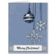 Hand - drawn bauble and 2 snowflake ornaments on blue background with old paper texture, Christmas card