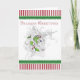 Christmas card with candy stripes, green tinsel and a Christmas Unicorn head