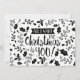 A hip and trendy black and white Christmas card with flowers, branches and the words: All I want for Christmas is you!