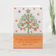 Christmas card Bunter fir tree with scrolls, balls and stars.