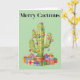 Send warm desert wishes this holiday season with our unique Cactus Christmas Card! This charming card features a watercolour design of a festive cactus, beautifully adorned with twinkling lights, colorful ornaments, and presents nestled around its base. It's the perfect way to add a touch of natural beauty and whimsical charm to your Christmas greetings, standing out with its prickly good cheer