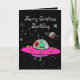 Christmas Card w/Alien in a Spaceship and Planets