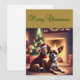 This card features a pair of Chihuahuas in front of a Christmas tree next to a fireplace. One Chihuahua is wearing a Christmas hat as he sits close to his best friend. This card is sure to make the person who receives it smile.