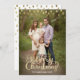 Modern photo card design with hand drawn script in faux gold and gold accents.