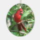 Ornament design features a photograph of a bright red male Northern Cardinal in an American Holly tree.