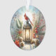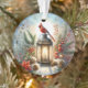 This Beautiful Christmas scene has a Cardinal sitting atop a lit lantern. Cardinals symbolize a visit from heaven. This is such a beautiful sentiment for loved ones who have passed.
