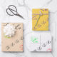 A Christmas carol theme-Fa la la -features a colourful variety of fonts, on a set of 3 wrapping papers in background colours white, yellow and antique beige.