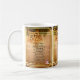 Christmas Carolers Coffee Mug is designed with lyrics from "O' Little Town of Bethlehem" upon antiqued sheet music with a golden frame, a red cardinal wearing a Santa hat. The colours are antique brown, gold, green, and black. Enjoy this Christmas / Holiday mug all season!