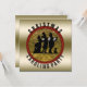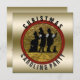 Christmas Caroling Party Invites in black and gold with touches of holiday red- Victorian carolers sing in the snow with a dog against a faux gold foil background enclosed in a cranberry red circle frame over a faux gold foil background with a faux gold metal background. In sophisticated black and gold. Reads Christmas Caroling Party in curved black text on front with custom matching red text templates for your Christmas caroling party on the back on same gold gradient pattern. Design your own personalized Victorian holiday party invitations.