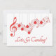 Pretty christmas ball ornaments covered in red lace with red bows and silver trimming on a white background grace this unique Christmas caroling party invitation with a moving musical staff covered in red lace. The beautiful vintage lace motif of interlacing stars and flowers is reminiscent of the ancient craft of lace-making. Party information may be personalized in the template provided.