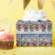 Cute snowmen carolers with snowflake overlay