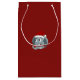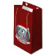 Gift Bag with an illustration of a cute elephant with red Santa cap; great decoration for Christmas holidays, editable template design with custom field for your own text, illustrated by Radka Kavalcova