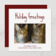 Cute Christmas greeting card with a tabby cats photo design. With festive red typography lettering, you can add your own information. You also can add your own photo. A fun way to send holiday greetings to friends and loved ones.