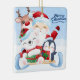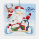 This ceramic Christmas Ornament is shown in a square shape with a festive holiday Santa and friends print.
