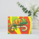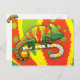 Christmas Chameleon Walking on a Candy Cane Holiday Postcard