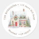 Christmas card address label. Lovely snow covered house with Christmas decorations. You can change text according to your requirements