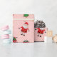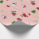 Christmas Character on Pink and Gold Glitter Wrapping Paper. Patterns include Santa Claus, snowman, polar bear, Christmas tree, gingerbread, reindeer, gift box, stocking and candy cane.