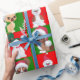 A Christmas theme pattern suitable for products with a repeating pattern printed on them. It has various dogs and snowmen wearing Christmas hats. The characters are presented on alternative red and green backgrounds. This pattern should be more appealing to children than adults.