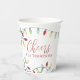 Bring festive joy to your Christmas celebrations with this cute, whimsical disposable coffee cup featuring cheerful holiday string lights and a playful cheers design. Perfect for holiday parties and gatherings, this fun custom party supply adds warmth and charm to your event. It is ideal for serving hot cocoa, coffee, or seasonal drinks at any Christmas party.