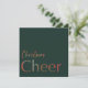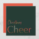 Christmas Cheer modern typography photo holiday card. Want a fresh and simple holiday photo card to send your holiday wishes this year? Your thoughtful greeting should be a reflection of you and your family. This elegant modern square family Christmas card has a beautiful forest green front with festive Christmas Cheer script. The back is a bold Christmas red where your family photo and holiday greeting can be added. This design is both minimal and stylish and definitely a fun way to celebrate the season.