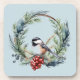 Christmas Chickadee Bird in Wreath Art Coaster