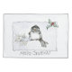 A cute Chickadee perched on a branch in winter snow fluffed up against the cold. An original watercolor by Bobcatcreek.com.