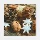 Design features a Christmas-themed photograph of cinnamon sticks and stars, as well as pine cones and walnuts in the shell.