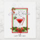 A watercolor Christmas design featuring elegant frames in Christmas red and green, a red Christmas cocktail with a Christmas candy cane, winter cherries, pine branches with a red ribbon, Christmas ornaments and gentle snowflakes in the back.
