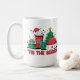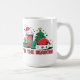A vibrant illustration features a coffee cup adorned with holiday sayings, alongside a decorated Christmas tree and wrapped gifts. The cheerful scene captures the spirit of the season, inviting warmth and joy during winter festivities.