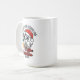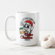 A playful skeleton wearing a Santa hat holds a coffee cup adorned with holiday lights. The humourous text conveys a light-hearted message about enjoying coffee and Christmas cheer. This festive design captures the fun spirit of the holiday season.