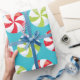 The colourful candy pattern makes the celebration cheerful and joyful. It features the festival colours of red and green on blue background.
