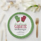 "Christmas Cookie Exchange" party paper plates with cute Christmas oven mitts illustration and red and white polka dots design. Digital illustration by Kristine Lee. For more, visit www.kristineleedesigns.com