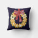 Christmas Cookie Wreath with Navy Blue Background Throw Pillow
