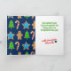 Fun Christmas card for holiday baking featuring chocolates, frosted cookies, gingerbread man, cupcake and cinnamon roll, personalized with your text on the front and inside, perfect for gifting your list with Christmas cookies or other sweets.