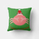 This awesome pillow features a funny graphic design image of a crab wearing a santa hat. The crab is pink and has big silly eyes on stalks and huge pinchy claws. A fun gift for everyone whether Christmas makes them crabby or not