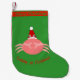 This awesome Christmas stocking features a funny graphic design image of a crab wearing a santa hat. The crab is pink and has big silly eyes on stalks and huge pinchy claws. A fun gift for everyone whether Christmas makes them crabby or not There is customizable text at the top of the stocking so it can be personalized.