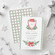These stunning, vintage style holiday wedding invitations feature a colourful, whimsical Christmas design. A bright red crest with your monogram and a bow is surrounded by watercolor green botanical foliage. The back of the invitation is decorated with red ribbons and green Christmas leaves.