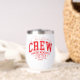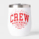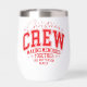 Christmas Crew Personalized Family Name Thermal Wine Tumbler features the text "Christmas Crew making memories together (add personalized name)" in modern red script typography. Perfect for Christmas gifts, family Christmas parties, family reunions and holiday celebrations and more. Created by Evco Studio www.zazzle.com/store/evcostudio